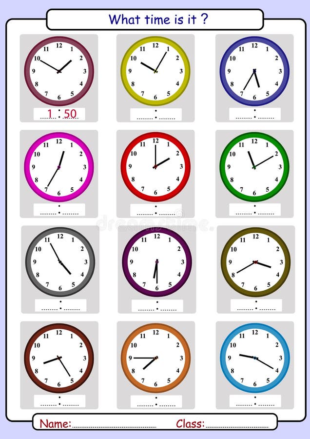 Telling Time What Time Is It Write Time Shown On Clock Vector Illustration Royalty Free Cliparts Vectors And Stock Illustration Image 60196380
